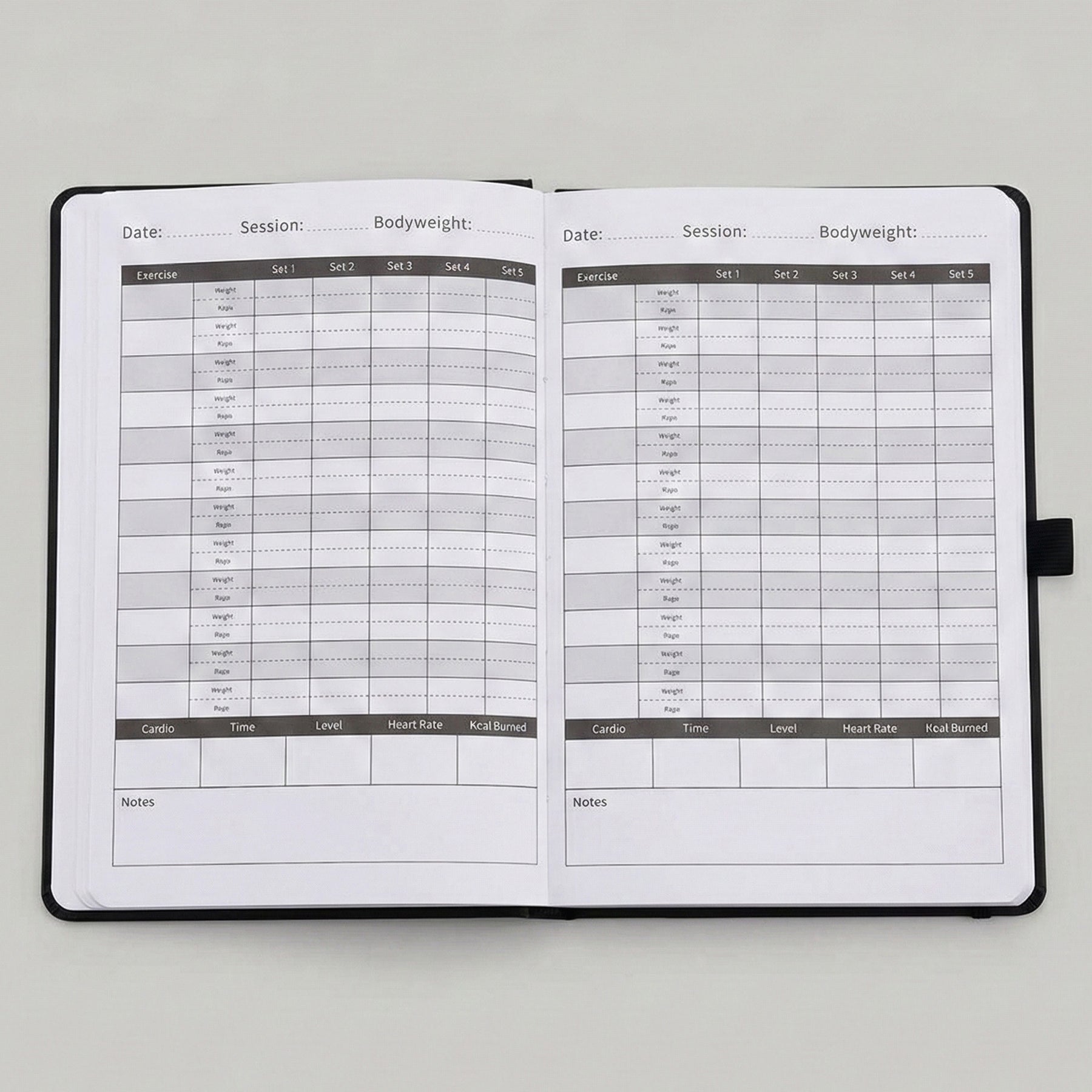 Every page is laid out to capture what actually matters in the gym: